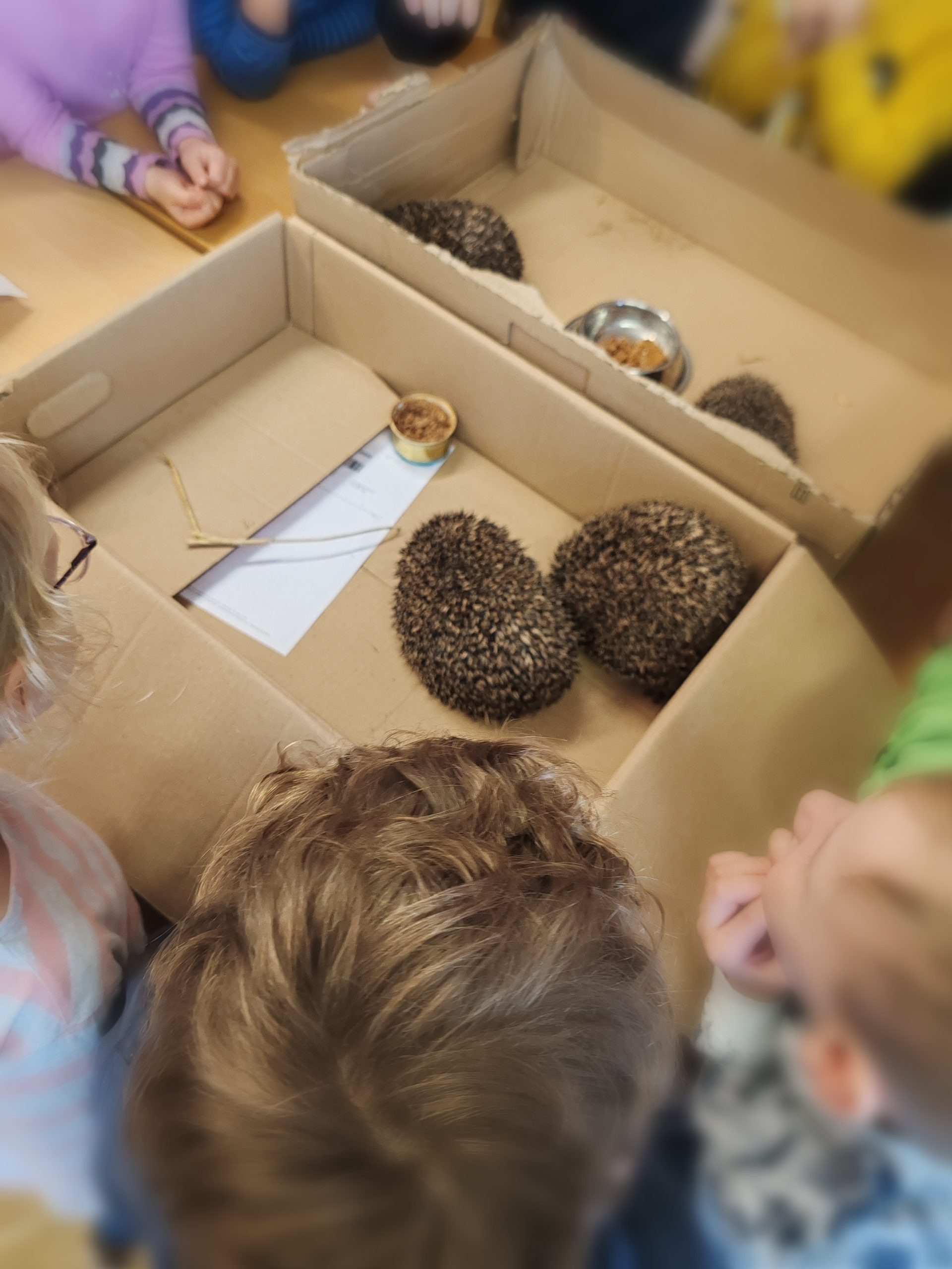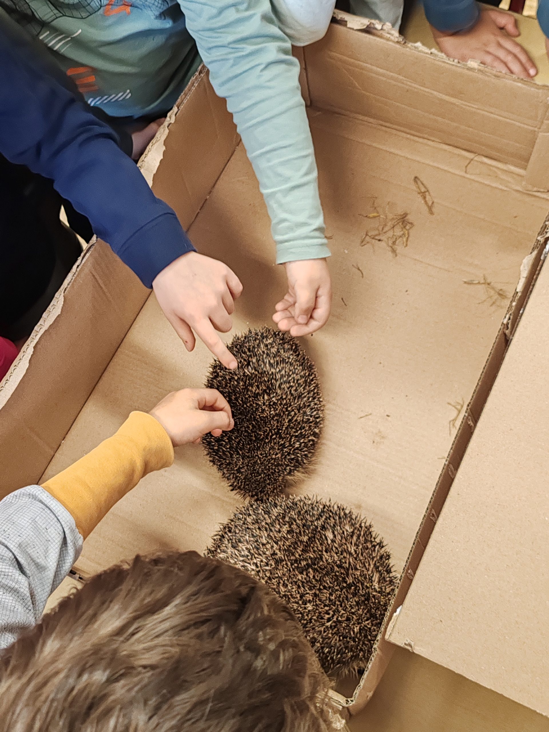 Da alle Igel bereits parasitenfrei auf die bald bevorstehende Auswilderung oder Überwinterung vorbereitet waren, durften die Kinder die Tiere sogar berühren und von allen Seiten betrachten. Es herrschte große Aufregung bei der Feststellung, daß so ein Igel wirklich richtig dolle stachelt 🦔.
