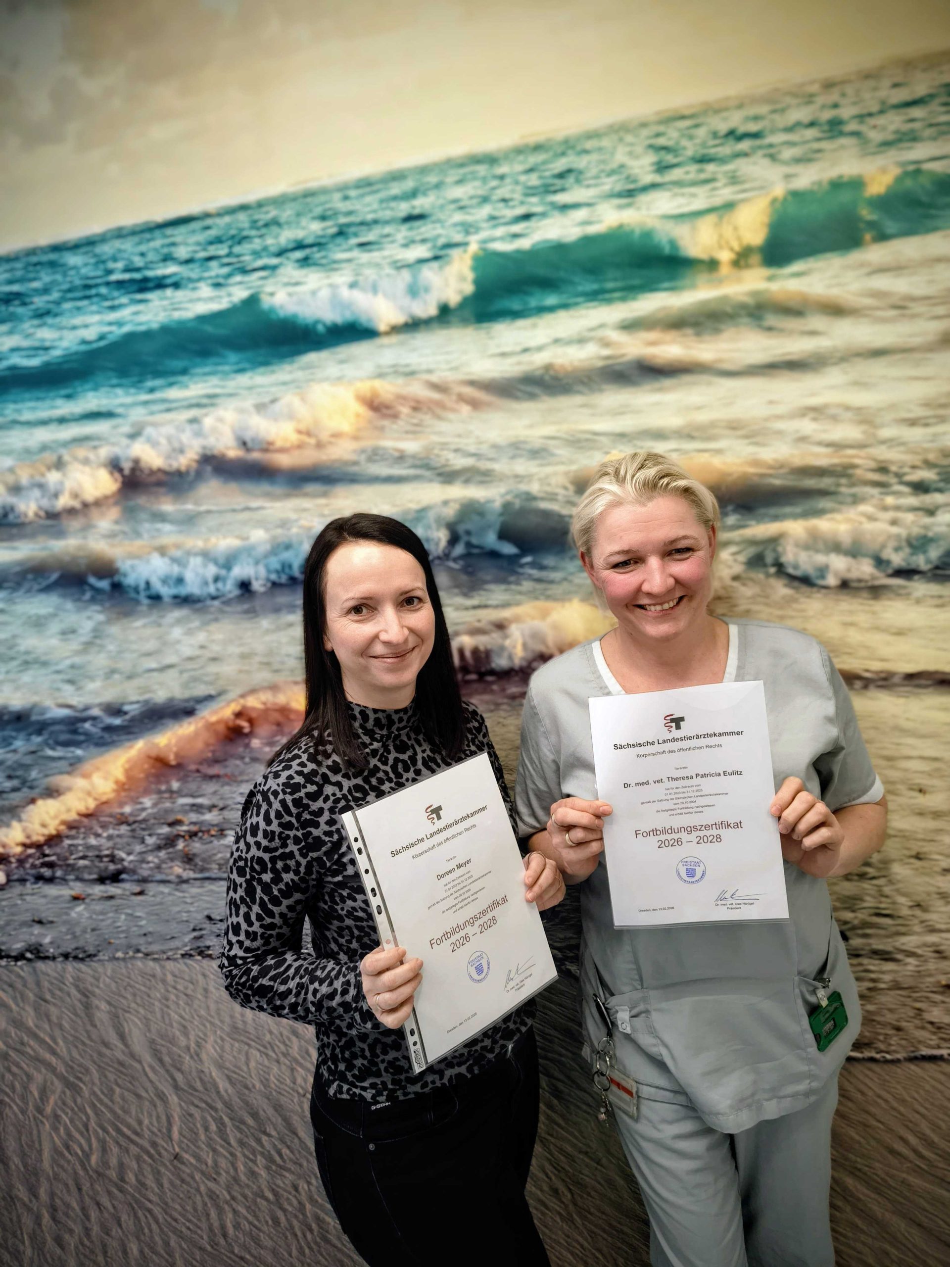 Unsere wissbegierigen Inhaberinnen, Tierärztin Doreen Meyer und Theresa Eulitz haben die geforderten 150 ATF-Stunde deutlich überschritten (ca. 250 ATF-Stunden) und tragen das Zertifikat damit durchgehend seit 2017.